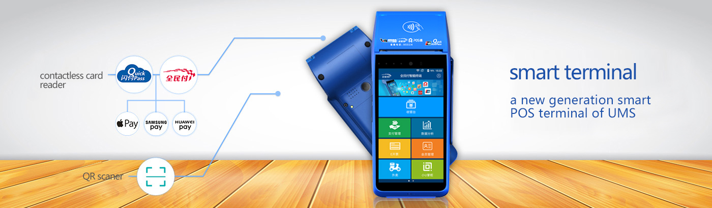 'UMS PAY'(Chinese is "全民付") is a service brand of UMS. Under ‘UMS PAY’, we provide a series of payment service and value added service such as mobile payment, smart POS terminal, logistics service, big data service, advertising service, IT developer platform, etc.